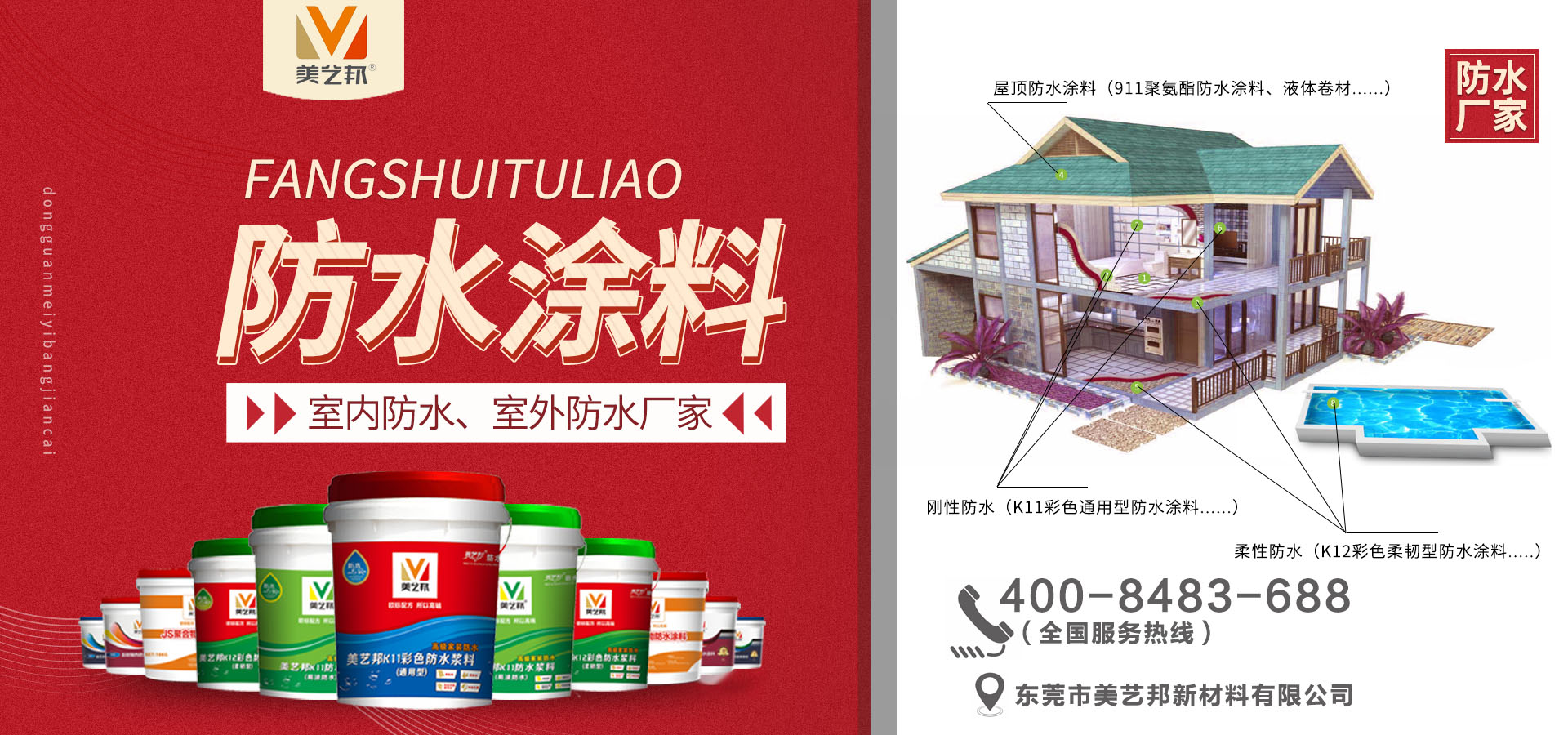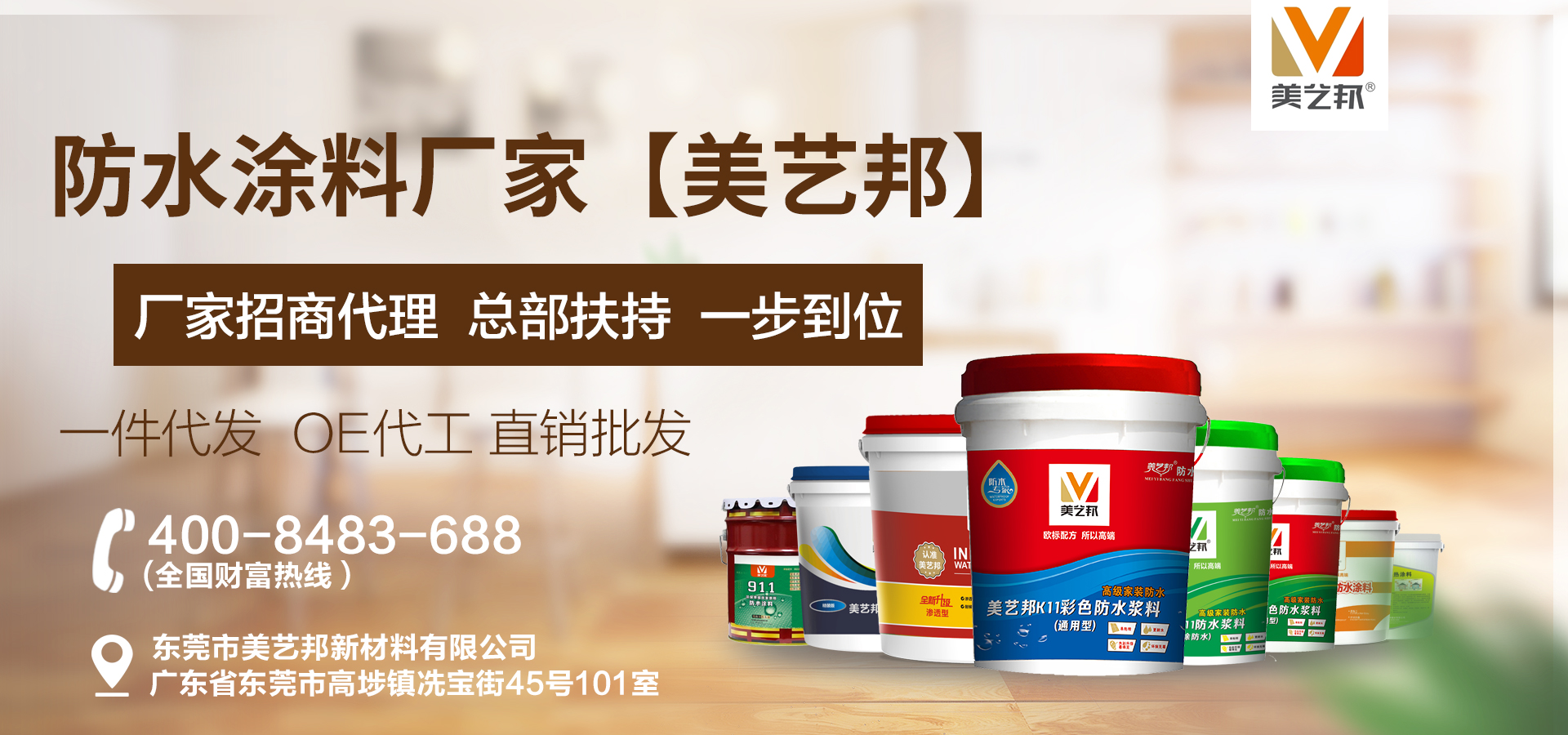 東莞市美藝邦新材料有限公司,是一家建筑防水行業(yè)集研發(fā)、設(shè)計(jì)、生產(chǎn)、銷(xiāo)售于一體的高新技術(shù)企業(yè)。基于東莞生產(chǎn)基地,開(kāi)展全國(guó)建筑輔材加盟招商代理批發(fā)業(yè)務(wù)。 我司采用國(guó)內(nèi)外先進(jìn)的科學(xué)技術(shù)的同時(shí),緊跟國(guó)際發(fā)展趨勢(shì)及結(jié)合國(guó)內(nèi)市場(chǎng)特點(diǎn),自主研發(fā)出健康環(huán)保型產(chǎn)品,其中包含防水涂料(K11彩色通用型防水涂料、K12彩色柔韌型防水涂料、JS聚合物防水涂料等等),瓷磚背膠(加強(qiáng)型瓷磚背膠、大理石瓷磚背膠、速干型瓷磚背...